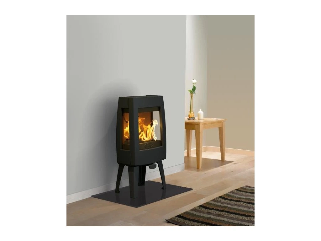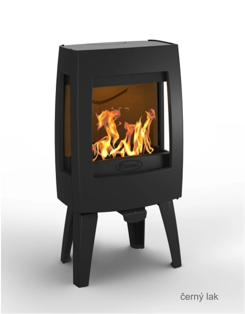 Podstavec kamen tvoří 4 nožky a povrch kamen je vyhotoven v černém laku. Díky možnosti napojení na externí přívod vzduchu v zadní části jsou kamna vhodná do nízkoenergetických domů. Třístranné sklo poskytuje krásný pohled do ohně z každého místa pokoje.