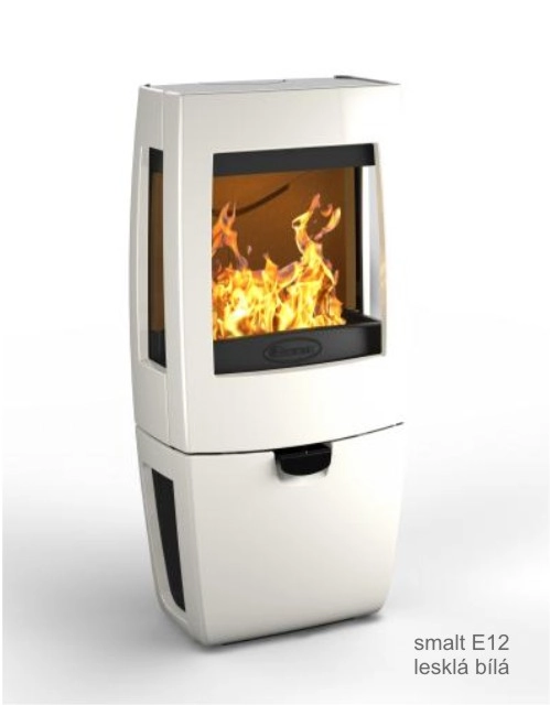 Povrch kamen je vyhotoven v bílém smaltu a jejich součástí je praktický podstavec. Díky možnosti napojení na externí přívod vzduchu v zadní části jsou kamna vhodná do nízkoenergetických domů. Třístranné prosklení poskytuje pohled do plápolajících plamenů téměř z každého místa pokoje.