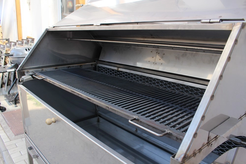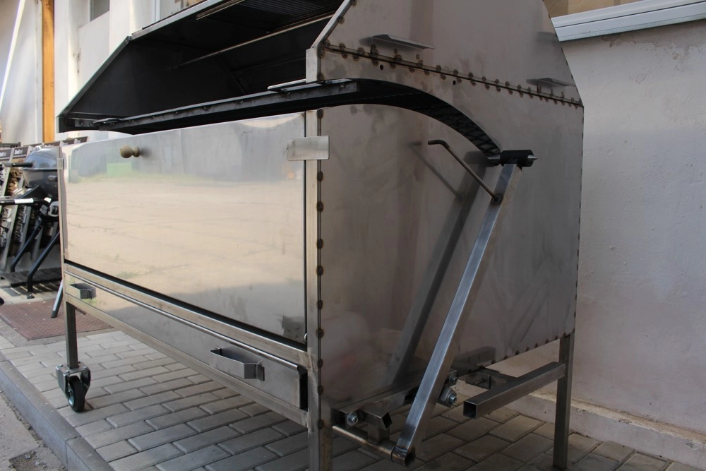 Opravdovým jedlíkům a fajnšmekrům v jedné osobě můžeme nabídnout tento gril na sele od rodinné firmy Řehulka z jižní Moravy. Gril pojme selátko o váze do 60 kg, až 3 kusy vepřové kýty, kuřata nebo velkou dávku steaků, klobásek a dalších dobrot. Součástí grilu je elektrický motor pro pohon rožně / jehly, přičemž ta je výklopná a výrazně tak usnadňuje obsluhu. Ve výbavě nalezenete také závěsy na ohřev klobásek nebo zásuvný rošt o rozměru 1295 x 400 mm pro grilování steaků a všech "drobnějších" potravin.