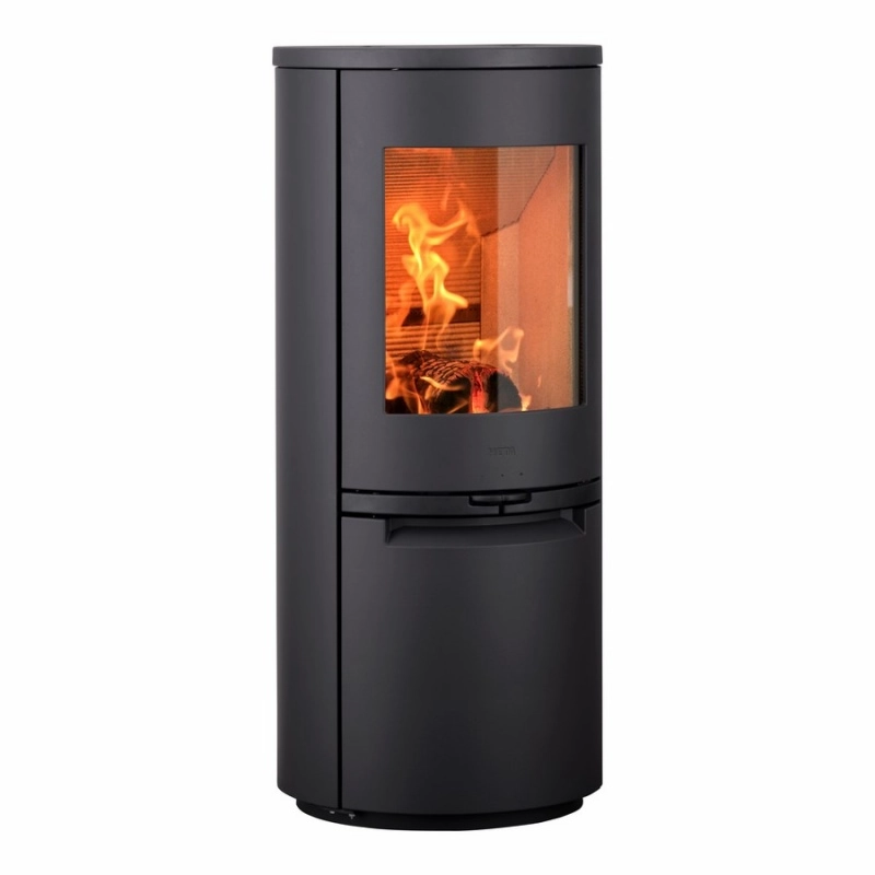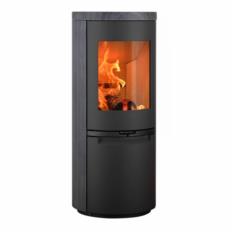 Velké prosklení zvýrazňuje krásné a efektivní spalování, které lze snadno regulovat pomocí ovládacího kolečka přívodu vzduchu na přední straně. Dveře jsou vybaveny automatickým uzavíráním, což zvyšuje komfort užívání. Samozřejmě s těmito kamny získáte všechny skvělé funkce, díky kterým je společnost HETA známá. Integrované masivní krbové nářadí a velký 5-ti litrový patentovaný popelník, elegantně umístěný za tvarovanými dolními dvířky.