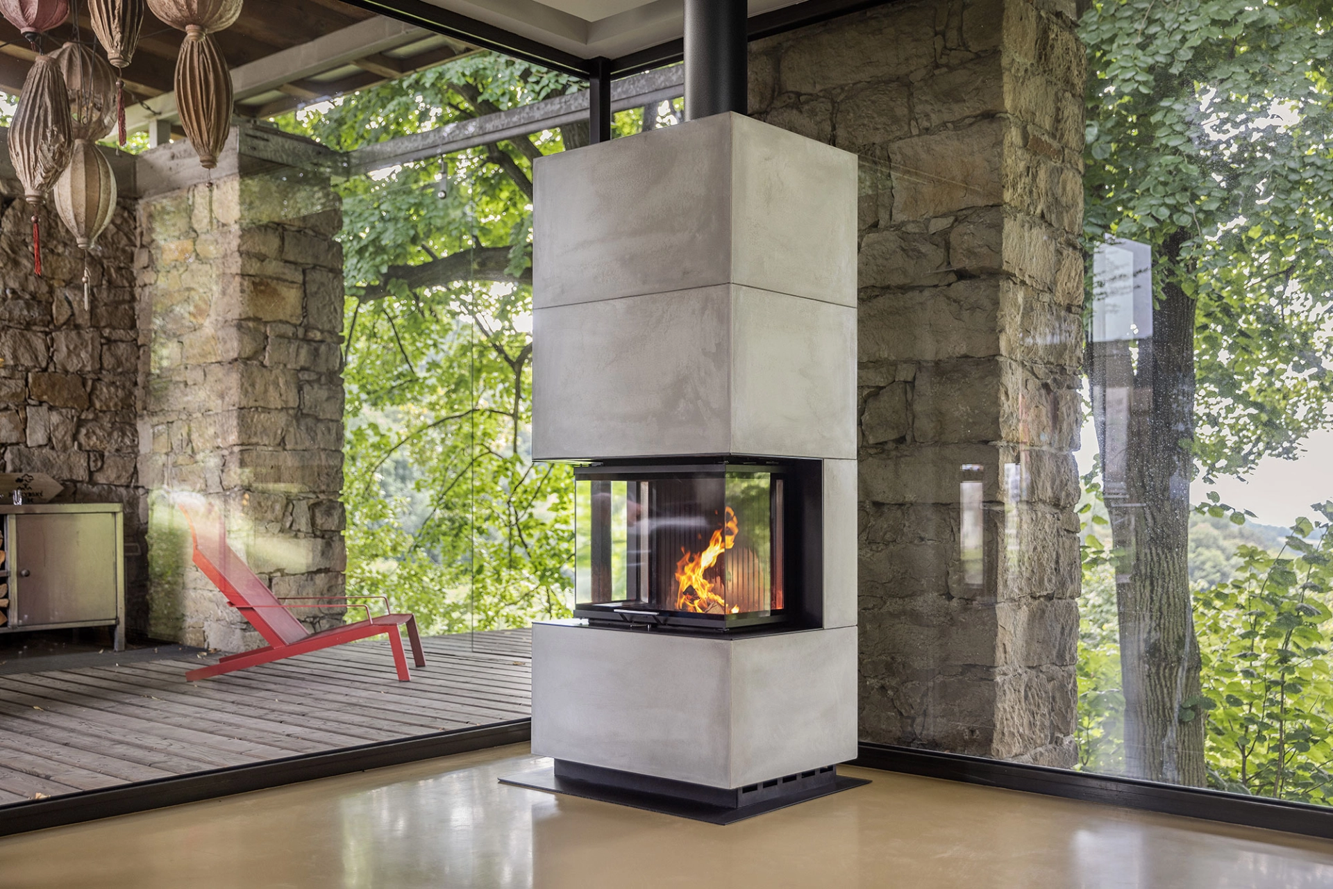 Konvekční nebo akumulační provoz - charakteristika modulárních krbů BLOX. Konvekčním způsobem vytápění máte k dispozici teplo za pár okamžiků a rychle tak vytopit místnost. Studený vzduch je spodními otvory nasáván a horním výdechem vypuštěn zpět do místnosti. Nevýhodou může být výšší obrátkovost paliva. Akumulační provoz funguje jako uzavřený systém, kde se postupně horkým kouřem před odvodem do komína tepelná energie předá do akumulační masy z těžkého betonu. Energie pak zpět postupně sálá do místnosti a vydává tak teplo ještě dlouhé hodiny od posledního přiložení. Typické pro tento způsob vytápění jsou větší dávky paliva v delším časovém intervalu.