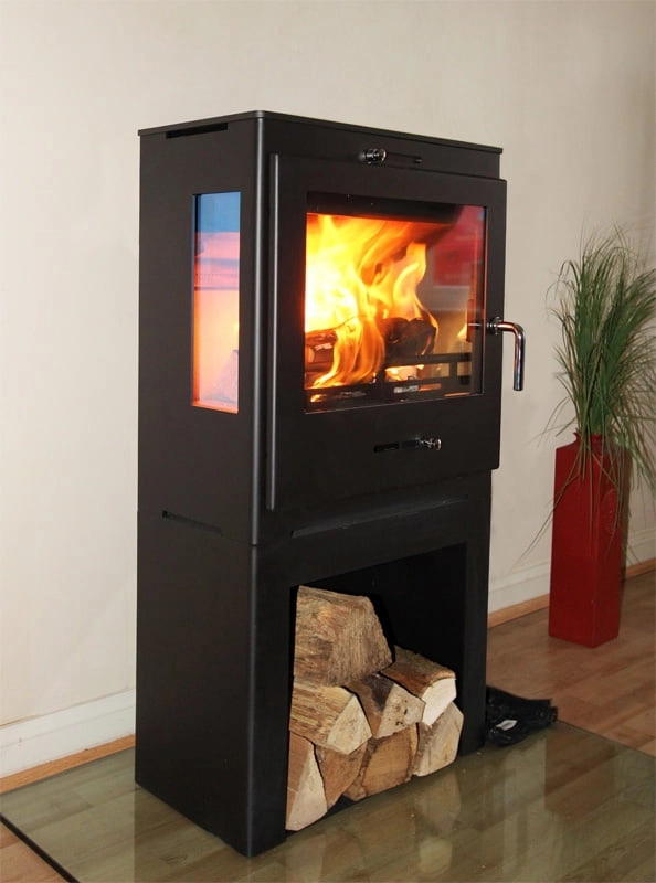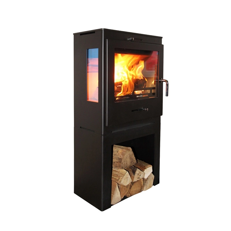 Jedná se o velmi odolná krbová kamna vyrobená z ušlechtilé kamnářské oceli s prosklením ze tří stran, takže můžete sledovat hru plamenů i z boků kamen. Jsou to v podstatě krbová kamna Hede 1 postavená na podstavec, který zároveň slouží jako prostor pro skladování dřeva. Specialitou těchto kamen jsou boční skla s nepřilnavou vnitřní vrstvou, která zaručují, že tato skla zůstanou vždy čistá a vy si budete moci užít krásu plamenů i z boků kamen.