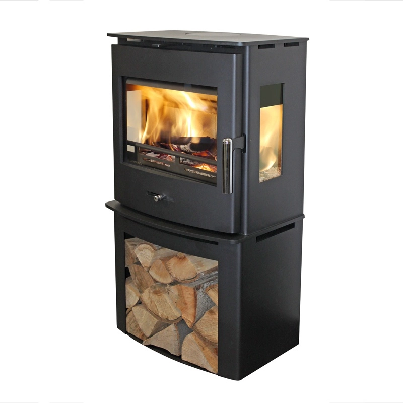 Krbová kamna Hede 4D Panorama vynikají hlavně elegantně zaoblenou čelní stranou kamen a masivní konstrukcí, která činí tl. 5 mm mořené kamnářské oceli. Horní deska a spodní deska pod spalovací komorou dosahuje dokonce tl. 10 mm této oceli. Označení 4D Panorama znamená kamna s bočním prosklením s vnitřní nepřilnavou vrstvou, díky které se sklo nezakuřuje a dřevníkem / podstavcem, kde si pohodlně uschováte palivo, či jiné pomůcky a vše budete mít vždy po ruce. Široká spalovací komora umožňuje pohodlné přikládání polen dlouhých až 38 cm. Kamna jsou osazena novým systémem otvírání dvířek pomocí robustní ocelové duté kličky s perforací zadní části, čímž dochází k ochlazování a dvířka lze otevřít i holou rukou.