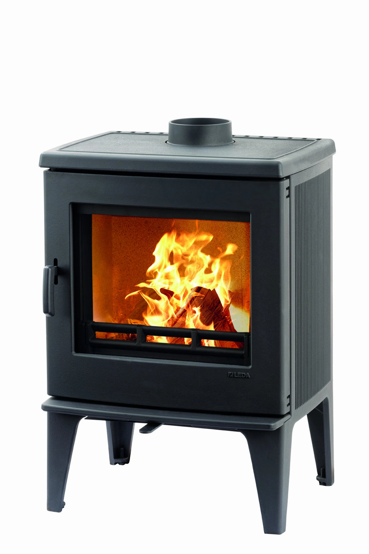 Kompaktní kvalitní litinová kamna od německého výrobce Leda vynikají masivní konstrukcí a velkým prosklením. Dokonalé spalování a pohodlné přikládání velkými dvířky zvyšuje komfort užívání. Povrchová úprava je černý matný lak. Nespornou výhodou je i možnost připojení přívodu vzduchu z exteriéru ovládání vzduchu jedním šoupákem a možnost horního či zadního odkouření.