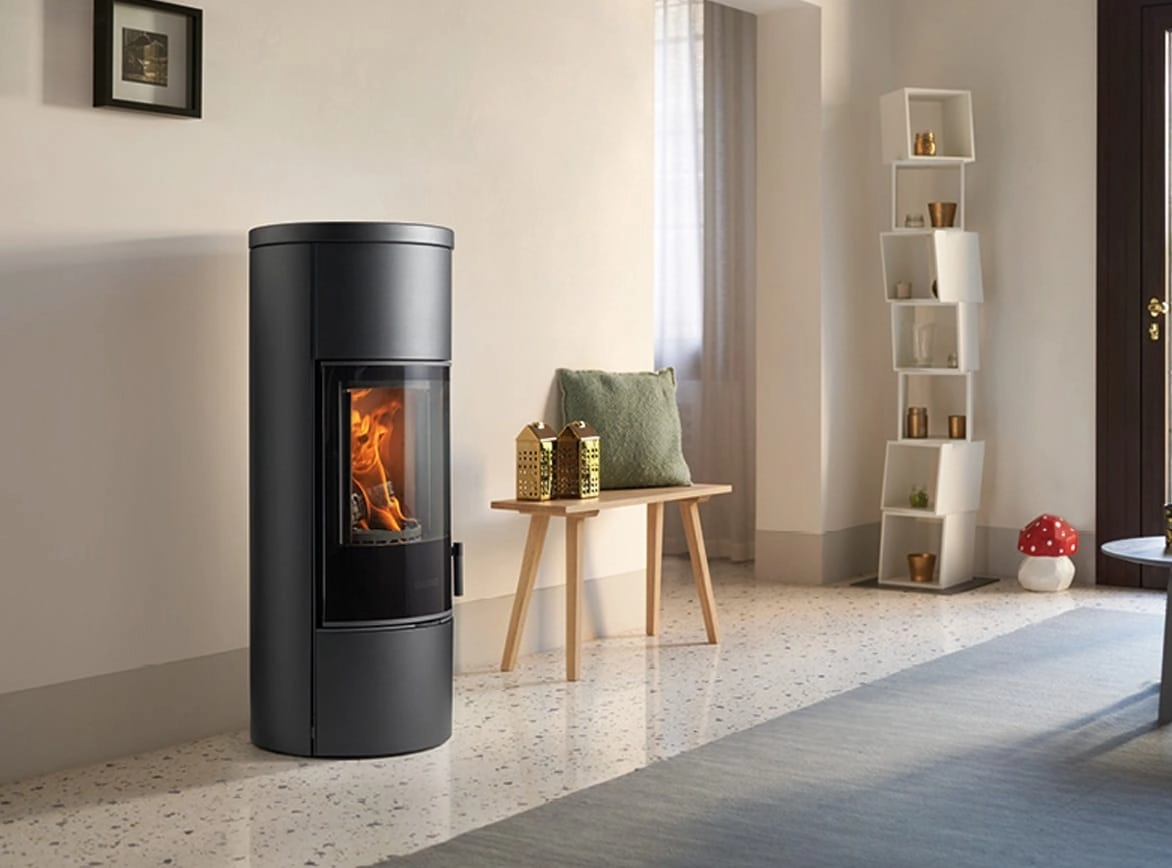 Kamna na dřevo s vyvýšeným topeništěm pro originální a osobitý design. Plášť z oceli s vrchní částí z keramiky, k dispozici v barvách Bianco a Nero Opaco. Dvířka se zaobleným sklem pro maximální výhled do ohně. K dispozici také se systémem BCS (automatické regulace hoření).