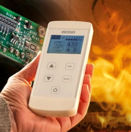 Hybridní kamna E228 D-S můžete používat stejně jako normální kamna na dřevo. Chcete-li ovšem přijet do vyhřátého domova když není nikdo doma, nebo nechcete bojovat s rozpalování kamen, pak si můžete kamna naprogramovat a ta se automaticky spustí na spalování pelet, než přijedete.