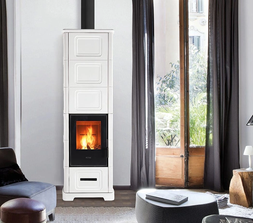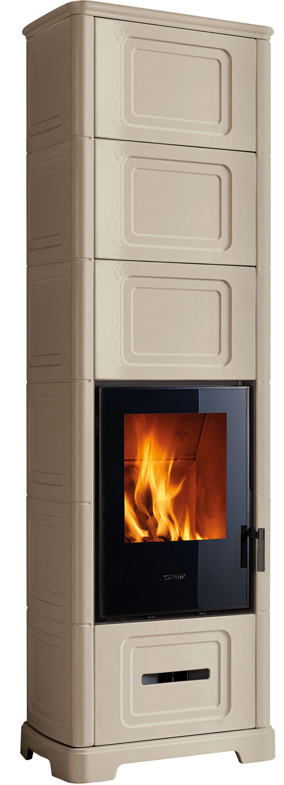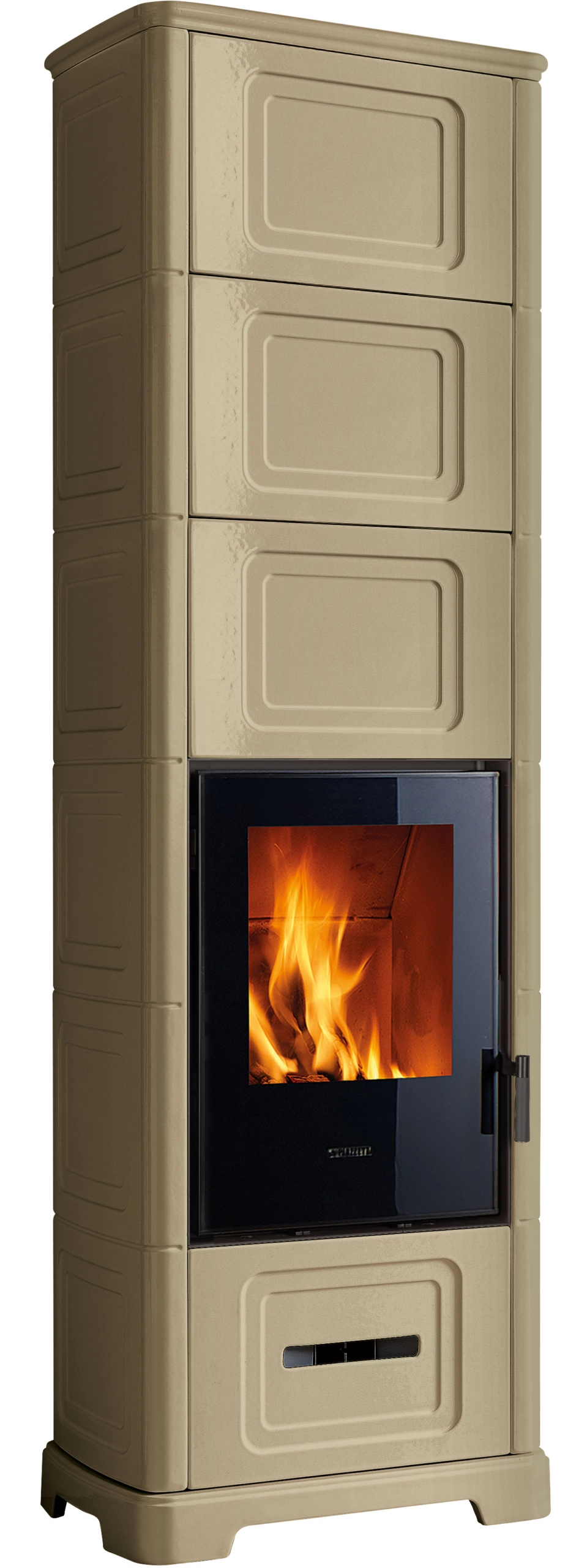 Kamna na dřevo, která vkusně dodají každému prostředí charakter, styl a harmonii. Mistrovsky ručně zpracovaný keramický obklad s předním nebo bez předního, nastavitelného větrání ohřátého konvekčního vzduchu. Dostupné v následujících barvách: Bianco, Bianco Grigio, Rosso Lava, Kaki, Verde Mirto a Canapa. K dispozici také jako vzduchotěsná verze s možností systému BCS (automatická regulace hoření) nebo integrovanou akumulací HSS.