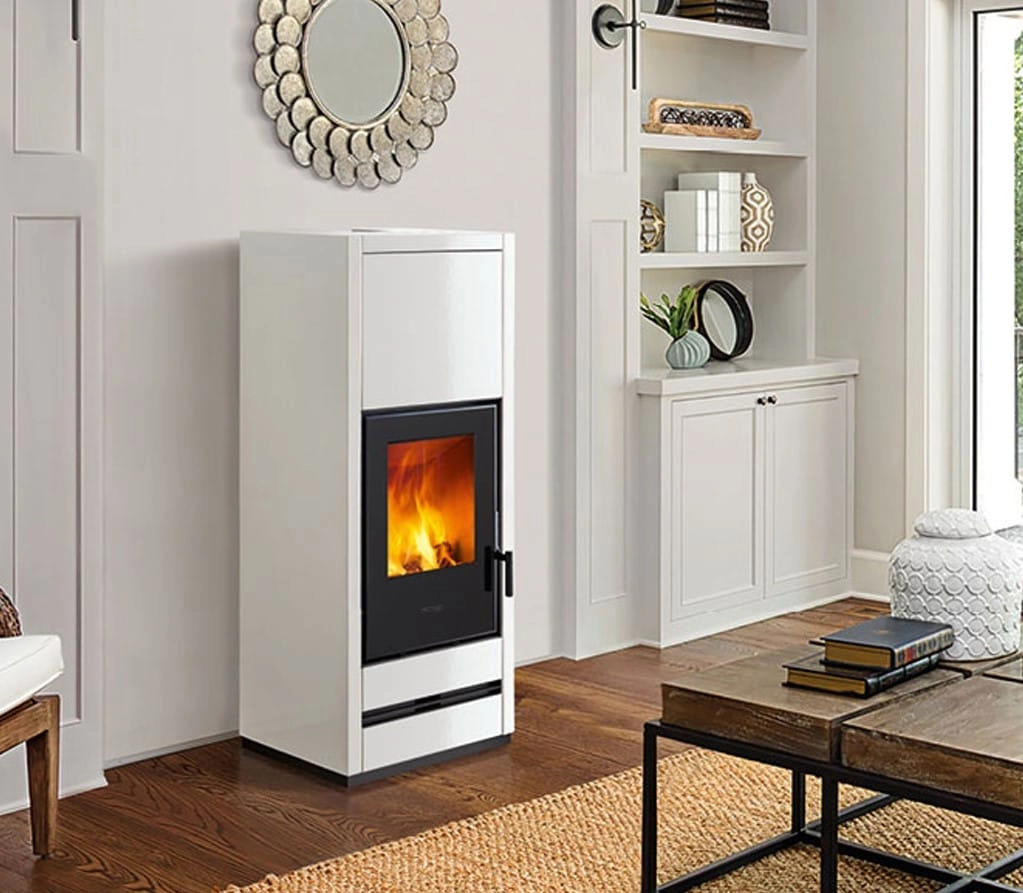 Kamna na dřevo s lineárním designem a štíhlými proporcemi, opláštěná masivní hladkou keramikou v barvách: Bianco, Nero Opaco, Rosso Lava a Terra Cotta. Nastavitelný přední výdech horkého vzduchu vylepšuje komfort vytápění. K dispozici také ve vzduchotěsné verzi se spalovacím vzduchem nasávaným z exteriéru a s elektronickým systémem kontroly plamene BCS.(automatická regulace hoření) nebo integrovaná akumulace HSS.