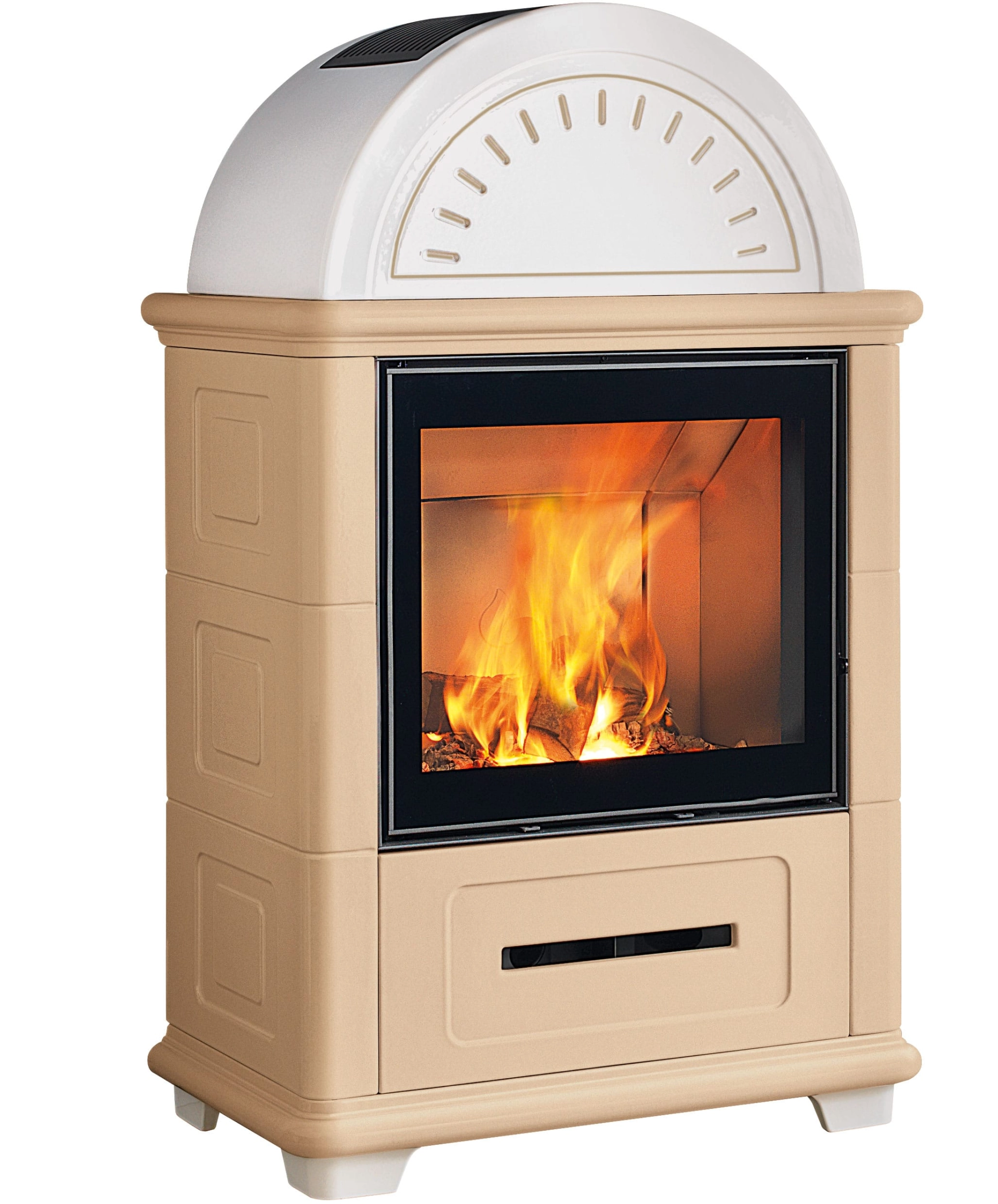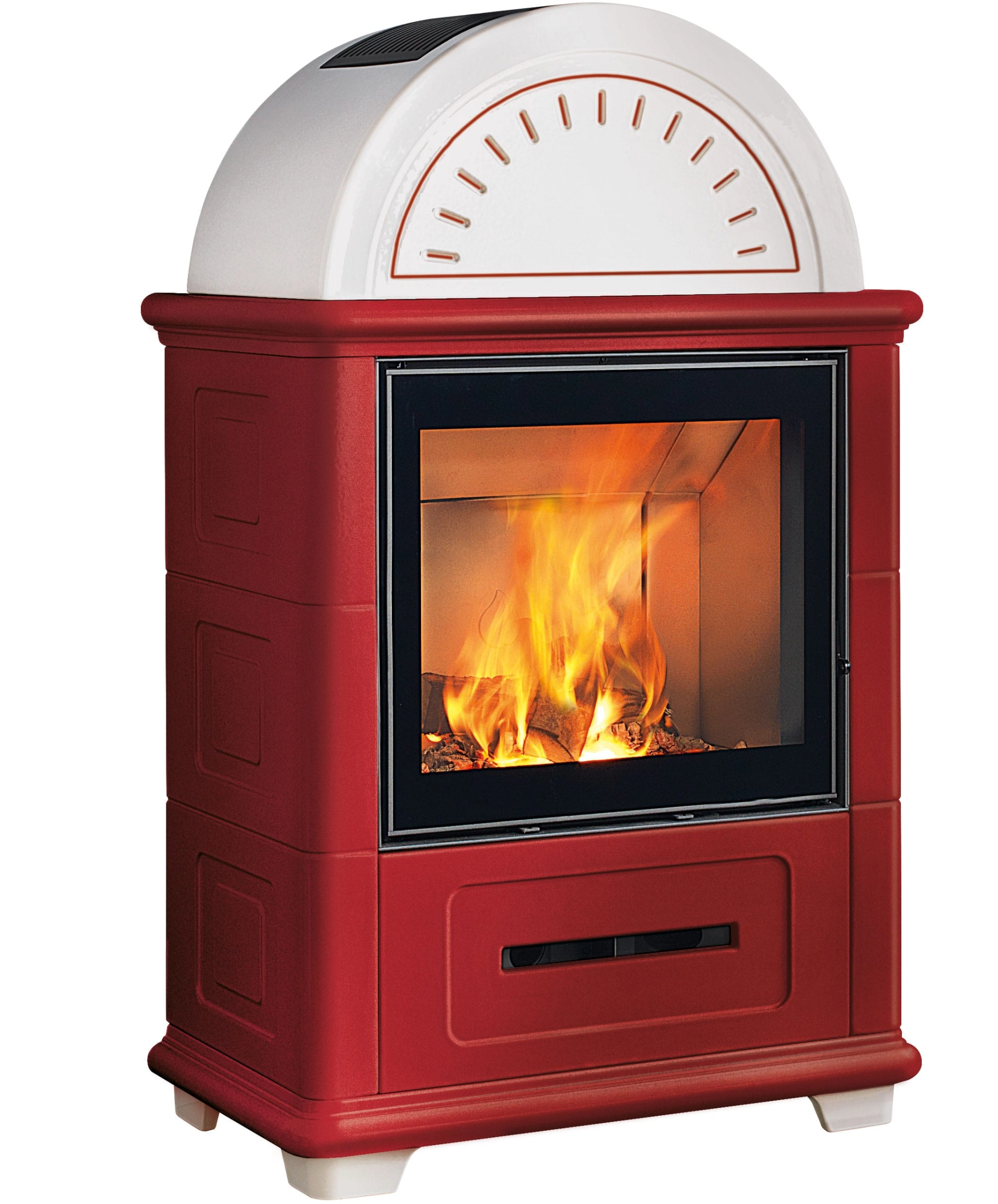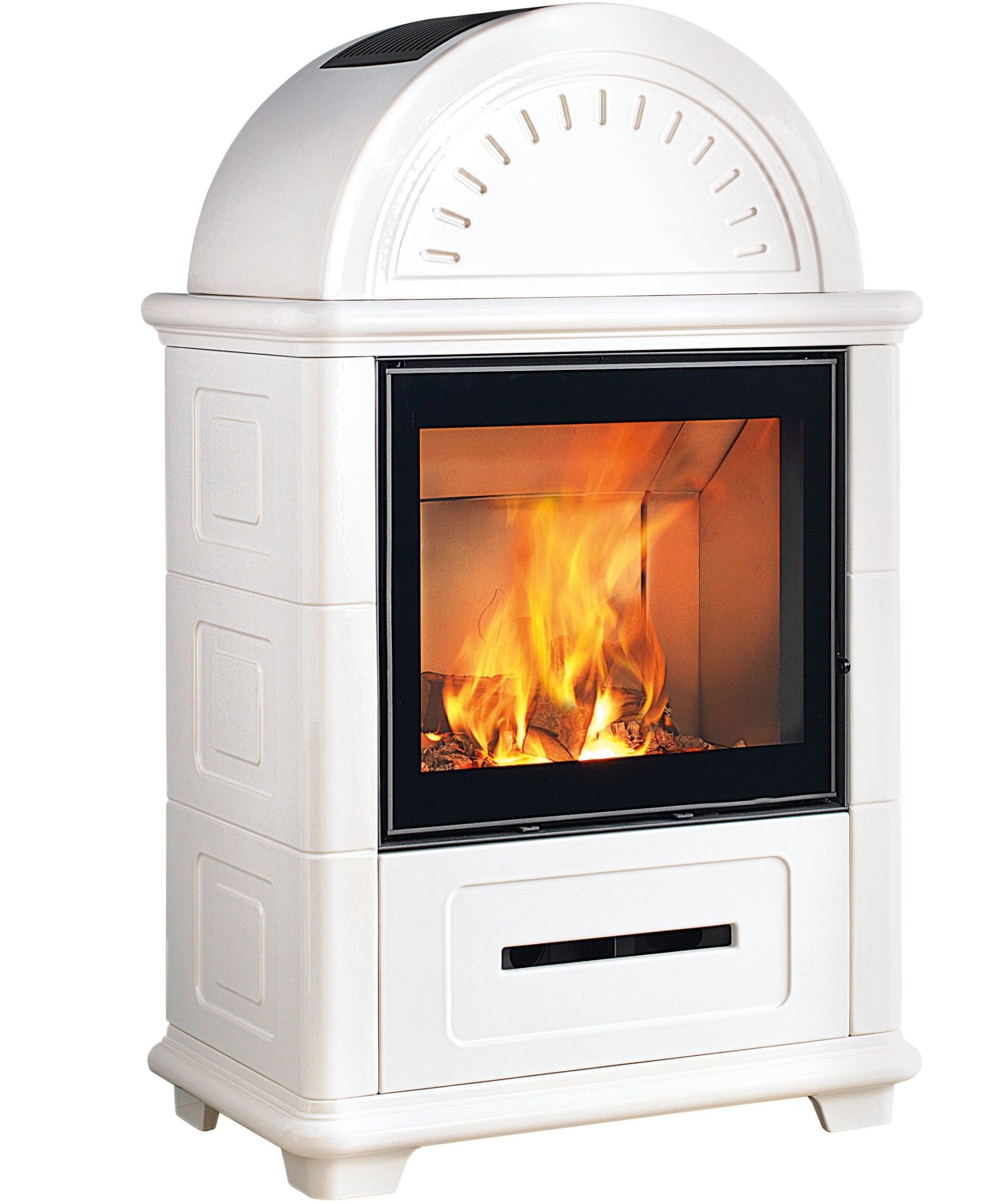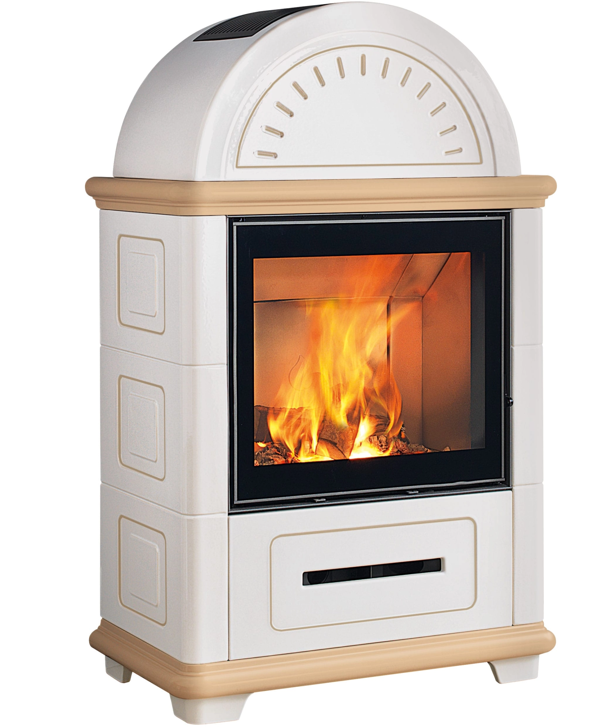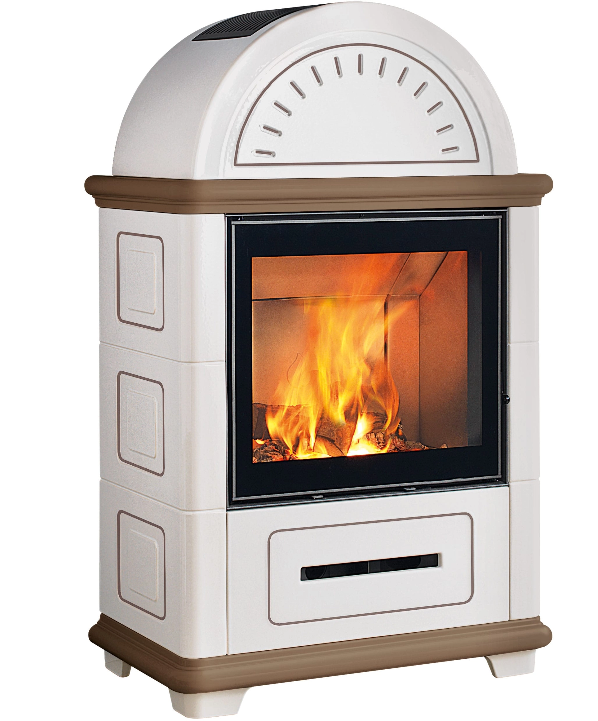 Nová interpretace těchto modernizovaných tradičních kamen na dřevo v klasickém stylu s harmonickými liniemi opět nabízí možnost přirozené konvekční ventilace horkého vzduchu předním průduchem v keramickém obložení. K dispozici v bílé barvě nebo ve dvoubarevných verzích v Bianco Antico s Rosso Lava, Canapa, Terra Bruna a Verde Mirto. Keramika vyniká hlavně ručně vyráběným zdobením.