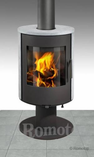 Romotop Evora T 02 jsou zajímavě řešená krbová kamna na otočné noze, což je umožňuje nasměrovat právě tam, kam zrovna potřebujete. Výkon kamen je možné regulovat v rozmezí 2 - 6,5 kW a tedy najdou své uplatnění jak v dobře zaizolovaných novostavbách, které nepřetápí, tak i v menších místnostech starších domů a chalup. Z hlediska designu působí kamna Romotop Evora T 02 velmi kompaktním dojmem a díky oválnému půdorysu skutečně nezaberou mnoho místa. K celkovému estetickému dojmu pak přispívá ještě zaoblené sklo umožňující sledovat plápolající plameny z širokého spektra úhlů a také obklad z přírodního kamene.