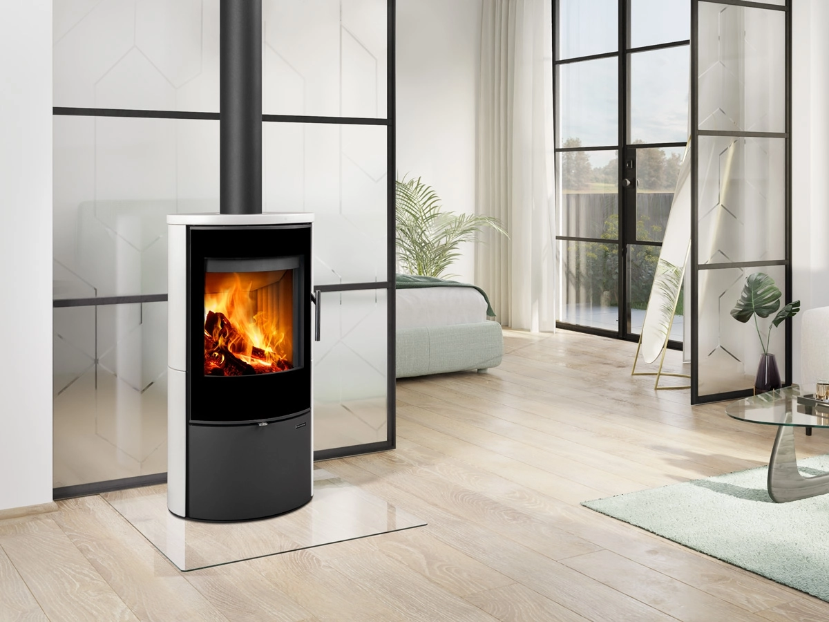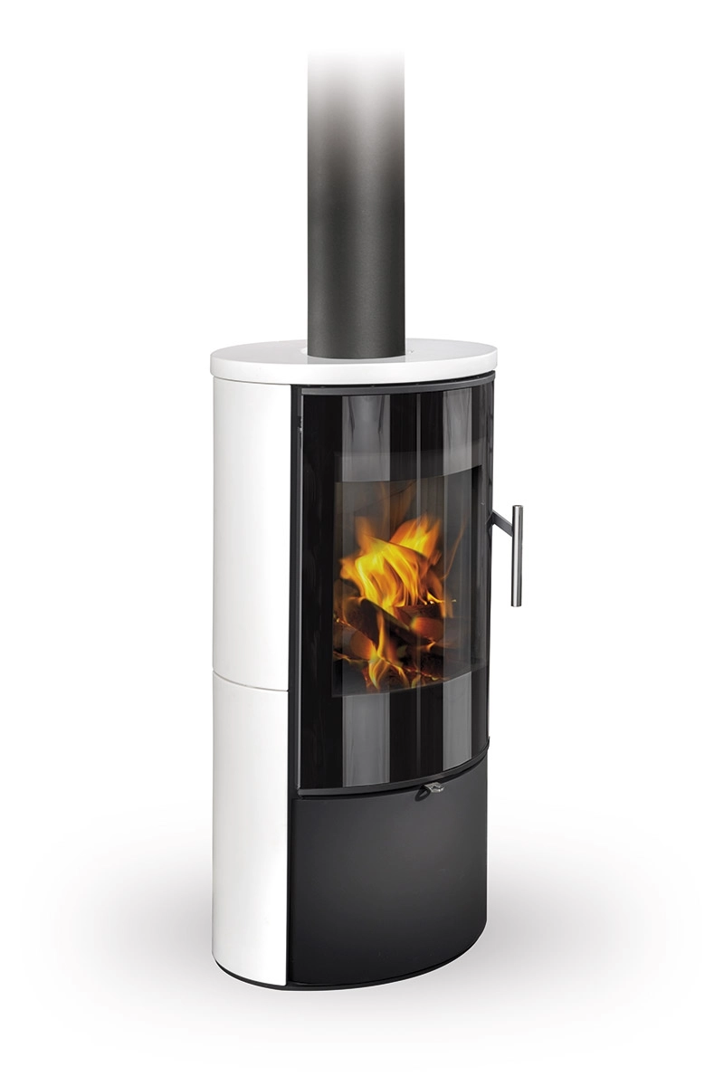 Romotop Laredo jsou velmi elegantní a vkusná krbová kamna na oválné základně, s celoskleněnými dvířky, nerezovými ovládacími prvky a keramickým obkladem, který můžete vybírat z třiceti různých odstínů. Moderní konstrukce spalovací komory přináší vysokou účinnost hoření (80%), díky čemuž kamna nabídnou dlouhý interval mezi přikládáním i vybíráním popela a současně produkují minimální množství škodlivých emisí. Zaoblené sklo poskytuje krásný pohled na hořící oheň a tak si ve společnosti kamen Romotop Laredo 01 užijete i tu nejmrazivější zimu. Sklo je navíc oplachováno předehřátým vzduchem, který ho udržuje krásně čisté a zabraňuje tzv. dehtování (černání).