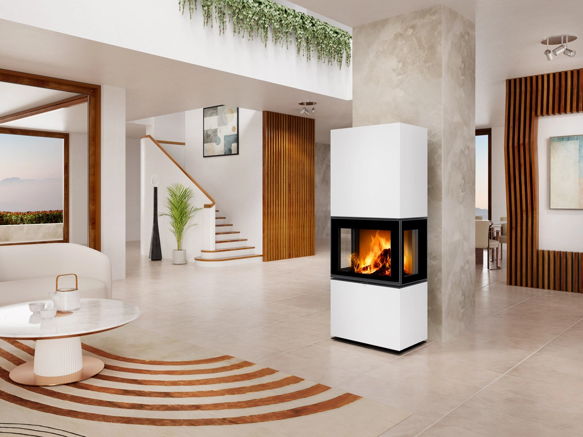 Designové krby LERA C spojují moderní design, minimalistický vzhled a funkčnost. Tento volně stojící krb zahřeje váš domov a zároveň se stane výrazným estetickým prvkem interiéru. Se třemi prosklenými stranami topeniště přináší jedinečný pohled na plameny z každého úhlu a tak atmosféra tepla a pohodlí proniká doslova celým interiérem.