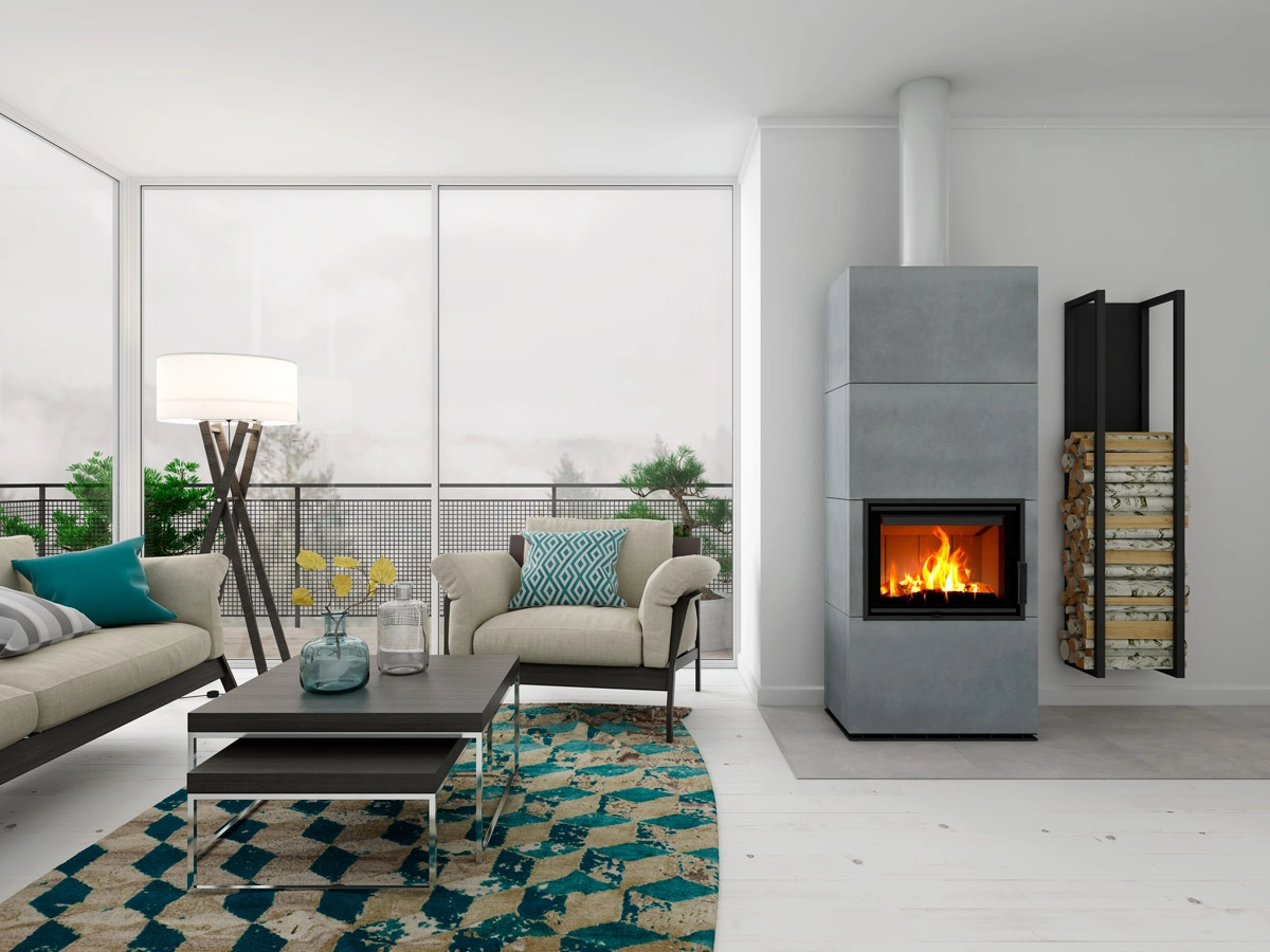 Keramický obklad je na všech čtyřech stranách. V nabídce jsou tři typy kachlových krbů, a to s rovným topeništěm nebo s rohovým levým a pravým. Spalovací komora je vyložena šamotovými tvarovkami, ve standardním provedení s roštem s možností změny na variantu bez roštu. Inovativní systém vedení spalin DOUBLE SPIN zvyšuje celkovou účinnost krbu. Výstup spalin je standardně možný horním nebo zadním odvodem. Díky sekundárnímu přívodu vzduchu na vnitřní plochu skla dvířek se účinně zabraňuje usazování nečistot. Čistému pohledu na oheň tak nic nebrání. Regulace primárního a sekundárního přívodu vzduchu se řídí jediným ovládacím prvkem.