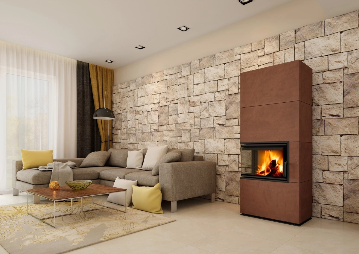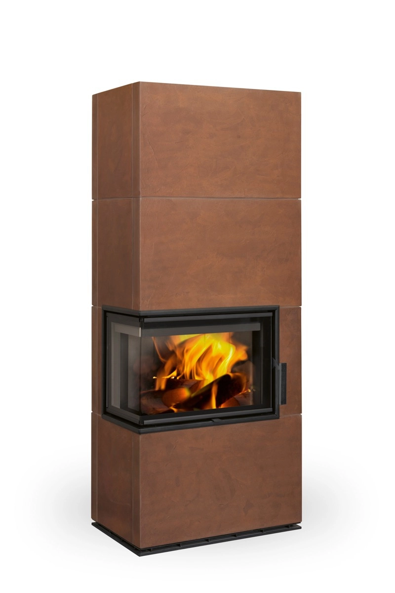 Keramický obklad je na všech čtyřech stranách. V nabídce jsou tři typy kachlových krbů, a to s rovným topeništěm nebo s rohovým levým a pravým. Spalovací komora je vyložena šamotovými tvarovkami, ve standardním provedení s roštem s možností změny na variantu bez roštu. Inovativní systém vedení spalin DOUBLE SPIN zvyšuje celkovou účinnost krbu. Výstup spalin je standardně možný horním nebo zadním odvodem. Díky sekundárnímu přívodu vzduchu na vnitřní plochu skla dvířek se účinně zabraňuje usazování nečistot. Čistému pohledu na oheň tak nic nebrání. Regulace primárního a sekundárního přívodu vzduchu se řídí jediným ovládacím prvkem.