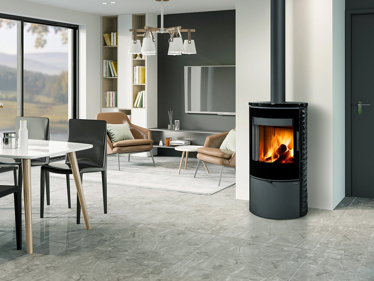 Zaoblený tvar krbových kamen SONE G společně s designovým sklem poskytují příjemný pohled na oheň, který nikdy nezevšední.