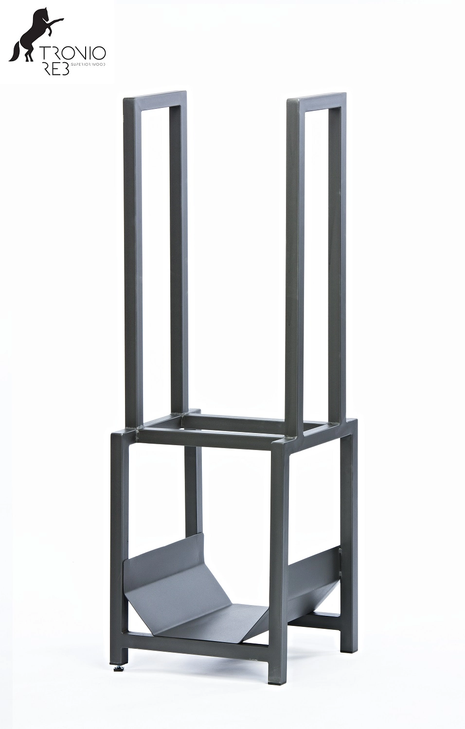 Praktický, poctivý a půvabný, tak by se dal označit tento stojan na dřevo, který skvěle padne ke krbu nebo krbovým kamnům. Zásobník se ručně vyrábí z ocelových profilů o rozměru 30x30 mm, které jsou po svaření do požadovaného tvaru lakovány komaxitovou barvou a to pod elektrickým nábojem, což způsobuje výrazně lepší přilnutí laku a jeho vyšší odolnost. Nohy stojanu jsou opatřeny gumovým podložkám, aby bylo zamezeno poškrábání podlahy. Jedna noha je vybavena šroubovací koncovkou pro ustavení stojanu na nerovné podlaze.