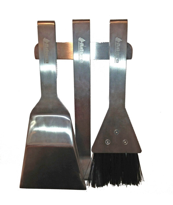 Designová sada krbového nářadí od značky Aduro je vybavena magnety, díky kterým je možné nářadí zavěsit. Sada obsahuje smetáček, lopatku a pohrabáč.
